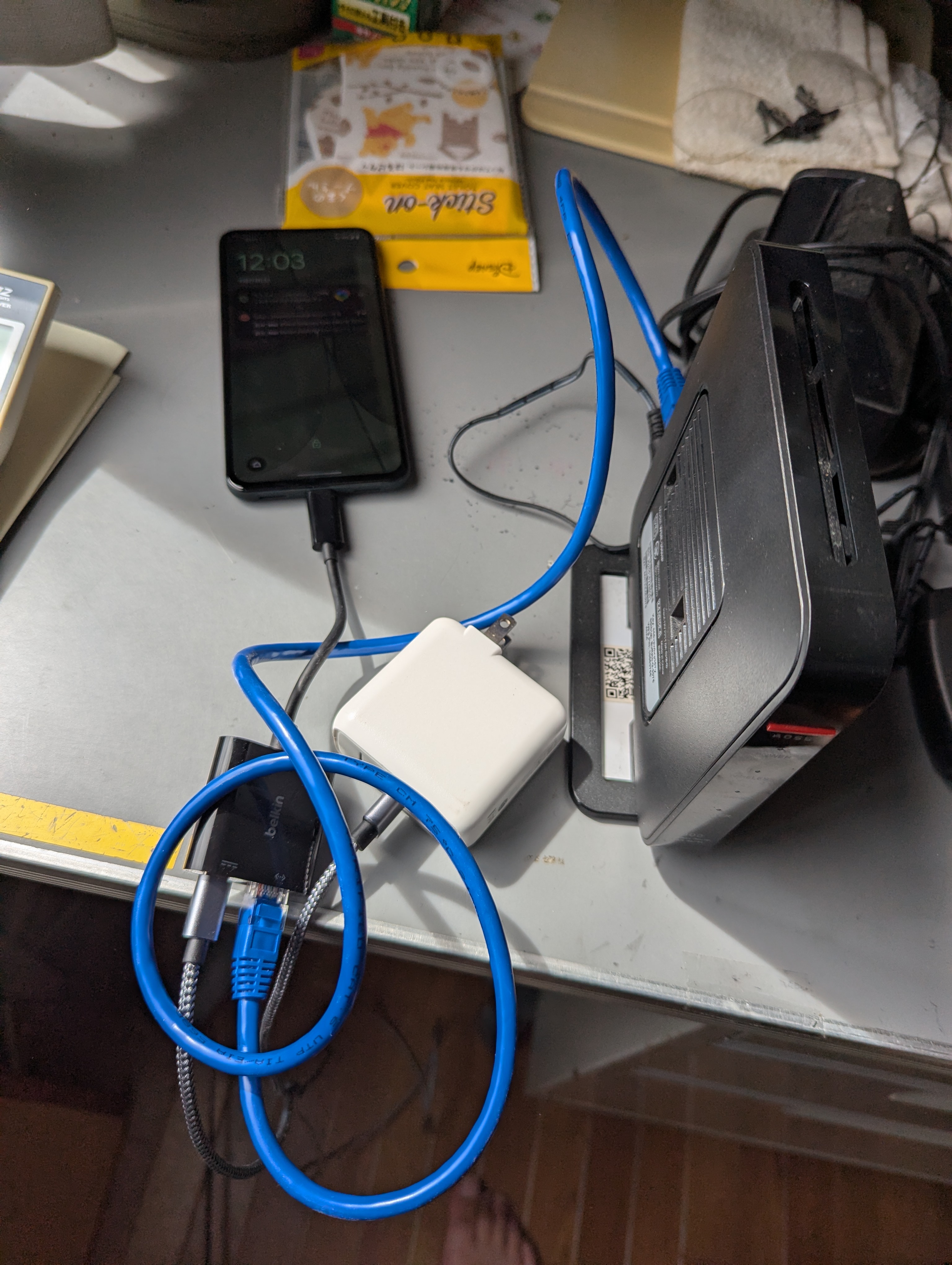 このアダプタのおかげで、充電しながらのイーサネットテザリングが可能になった。